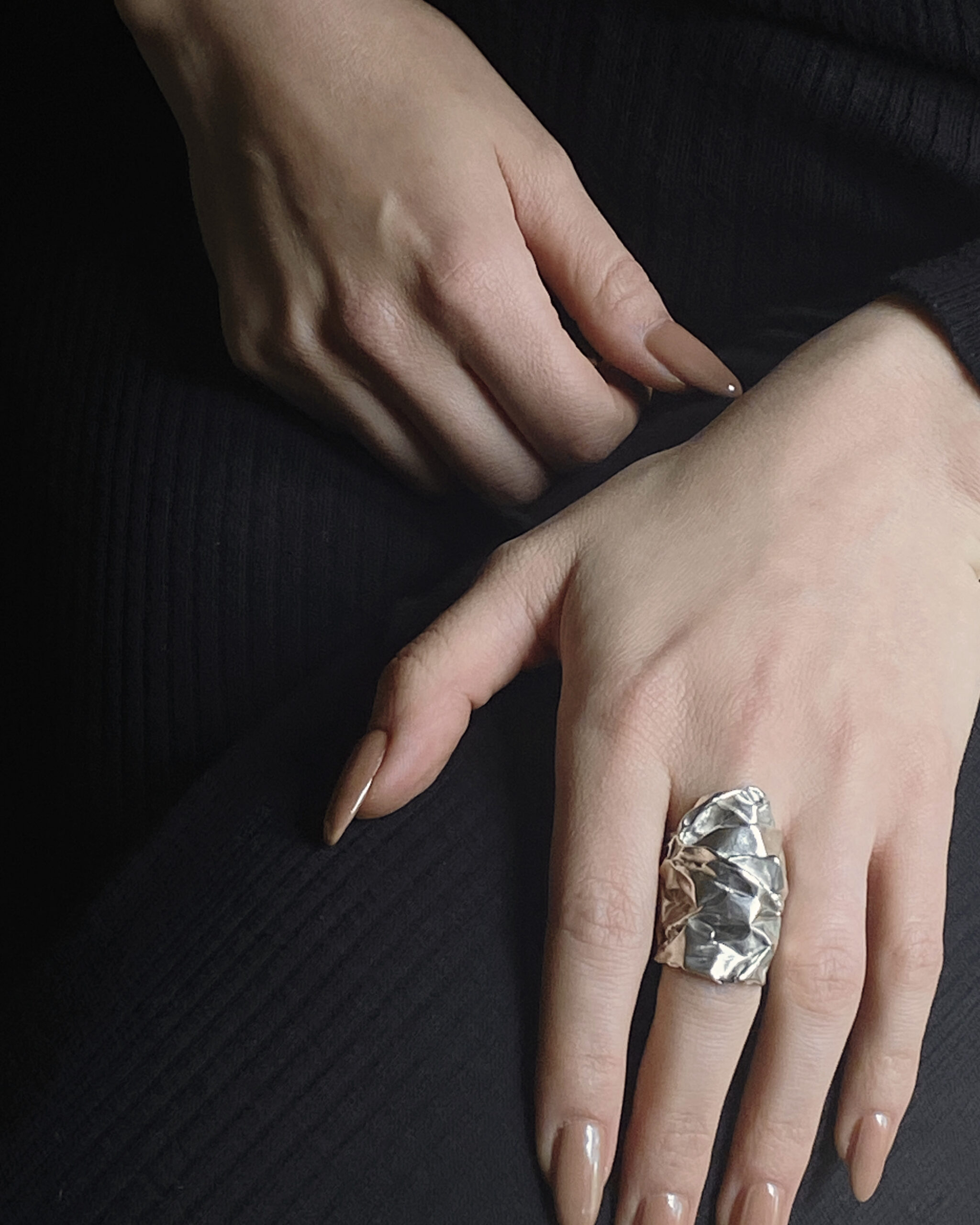 Cette bague de la nouvelle collection « Crash » marque une rupture dans ma collection .