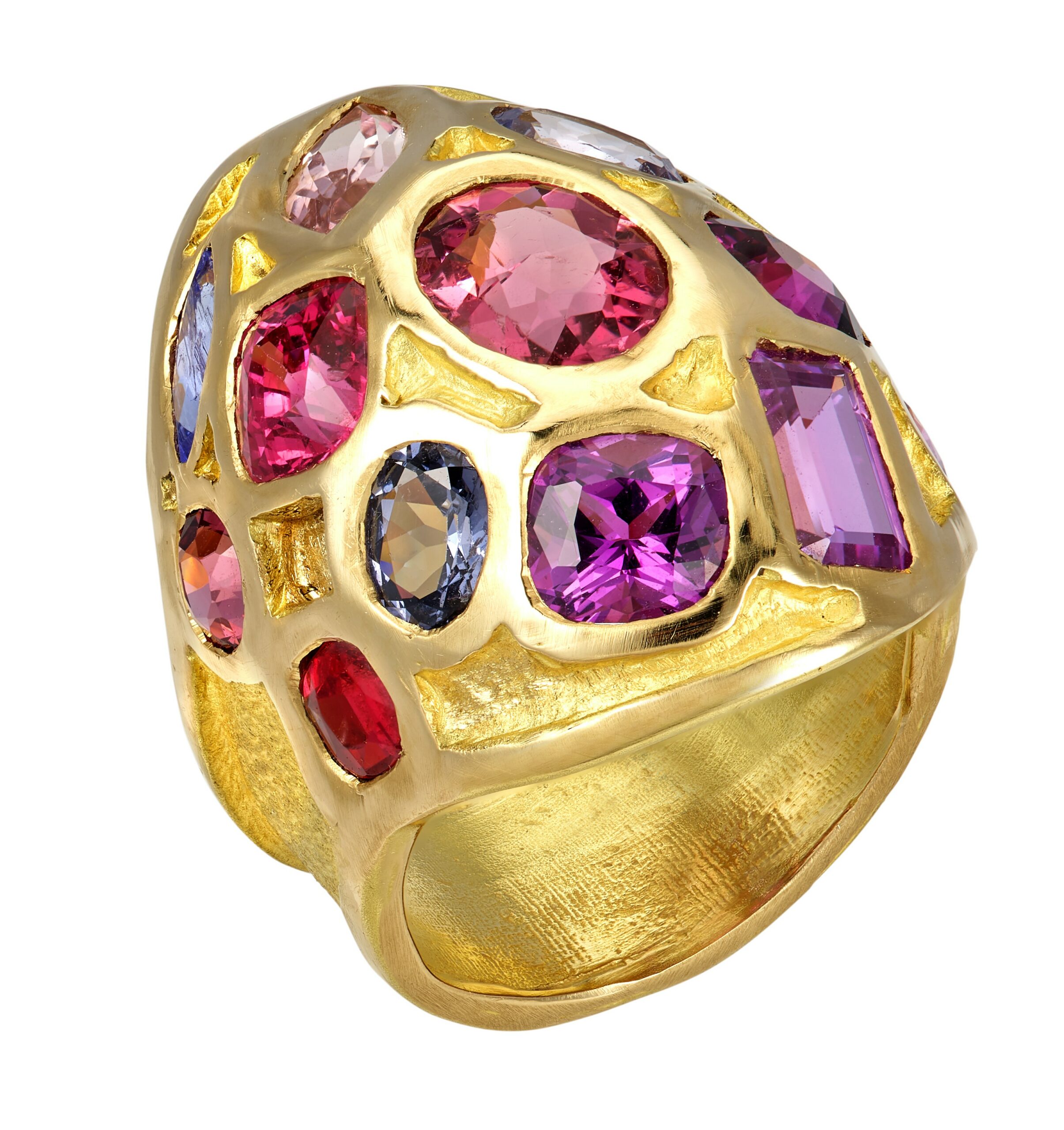 Toutes les pierres sont magnifiques .Tourmalines, saphirs de couleur , grenat violet, spinelles, tanzanites . une brassée de couleur.