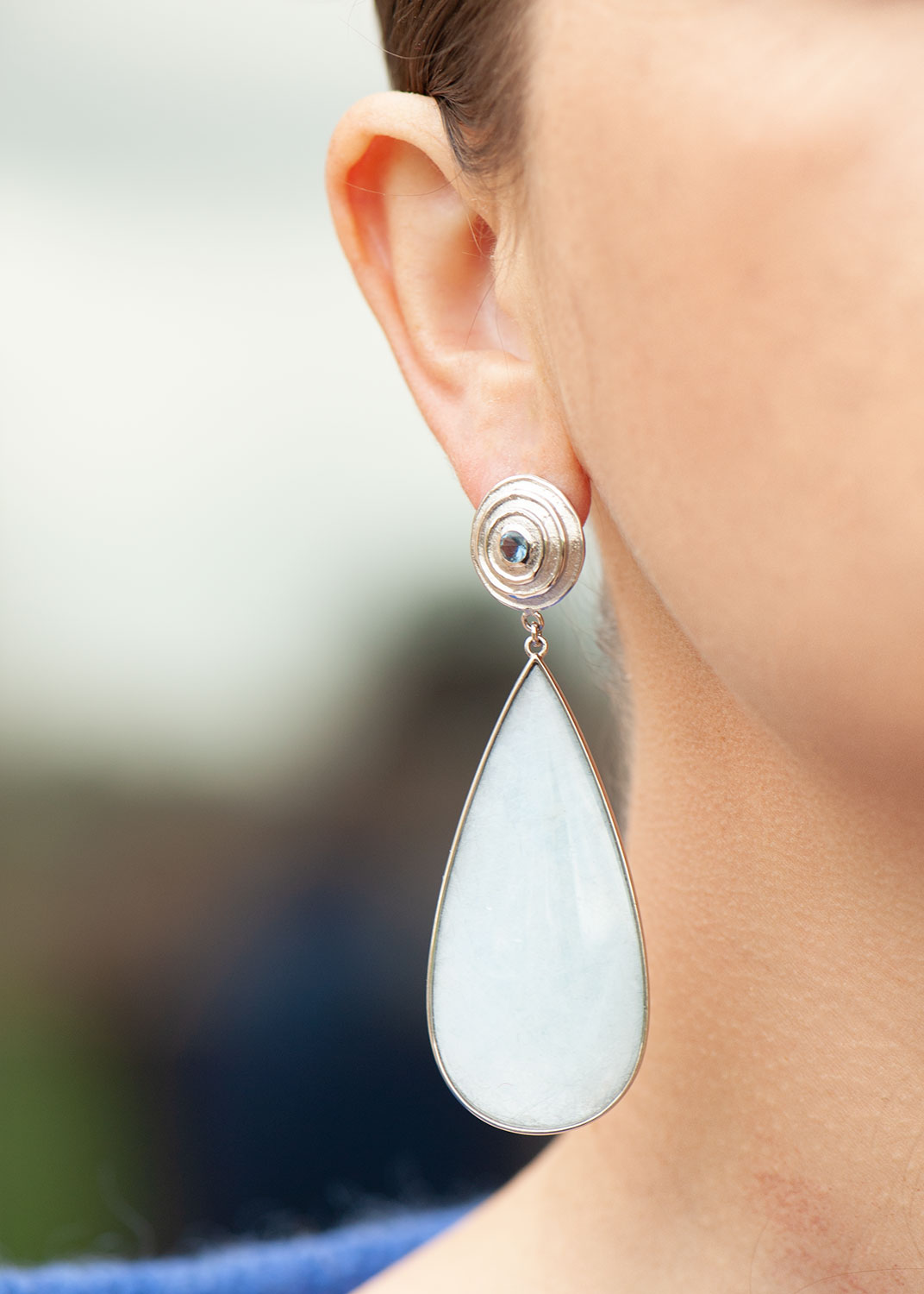 Parées de ces splendides aigues-marines de l’Oural, ces boucles sont les plus jolis ornements que l’on peut mettre a ses oreilles .